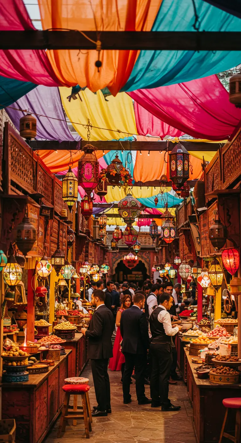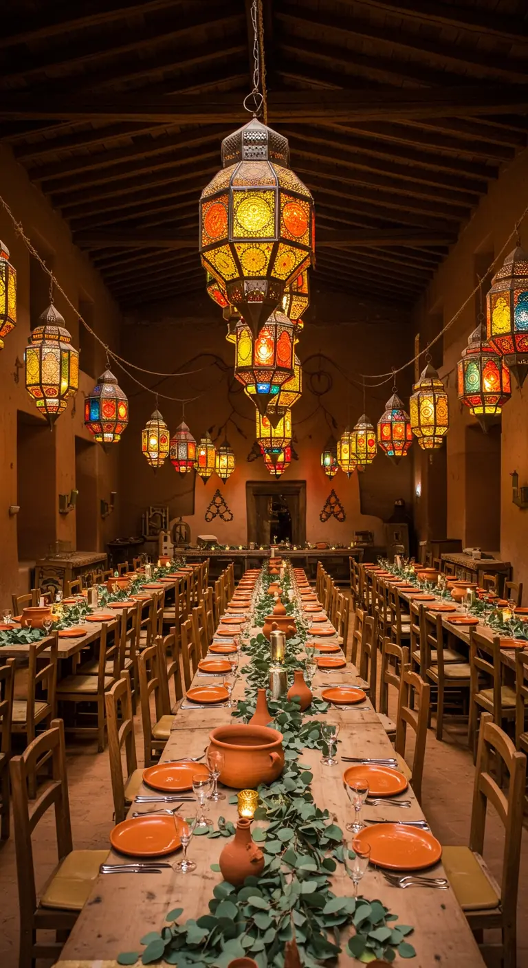 Transforma la barra de postres, la estación de bebidas o los puestos de comida en un bullicioso mercado marroquí.