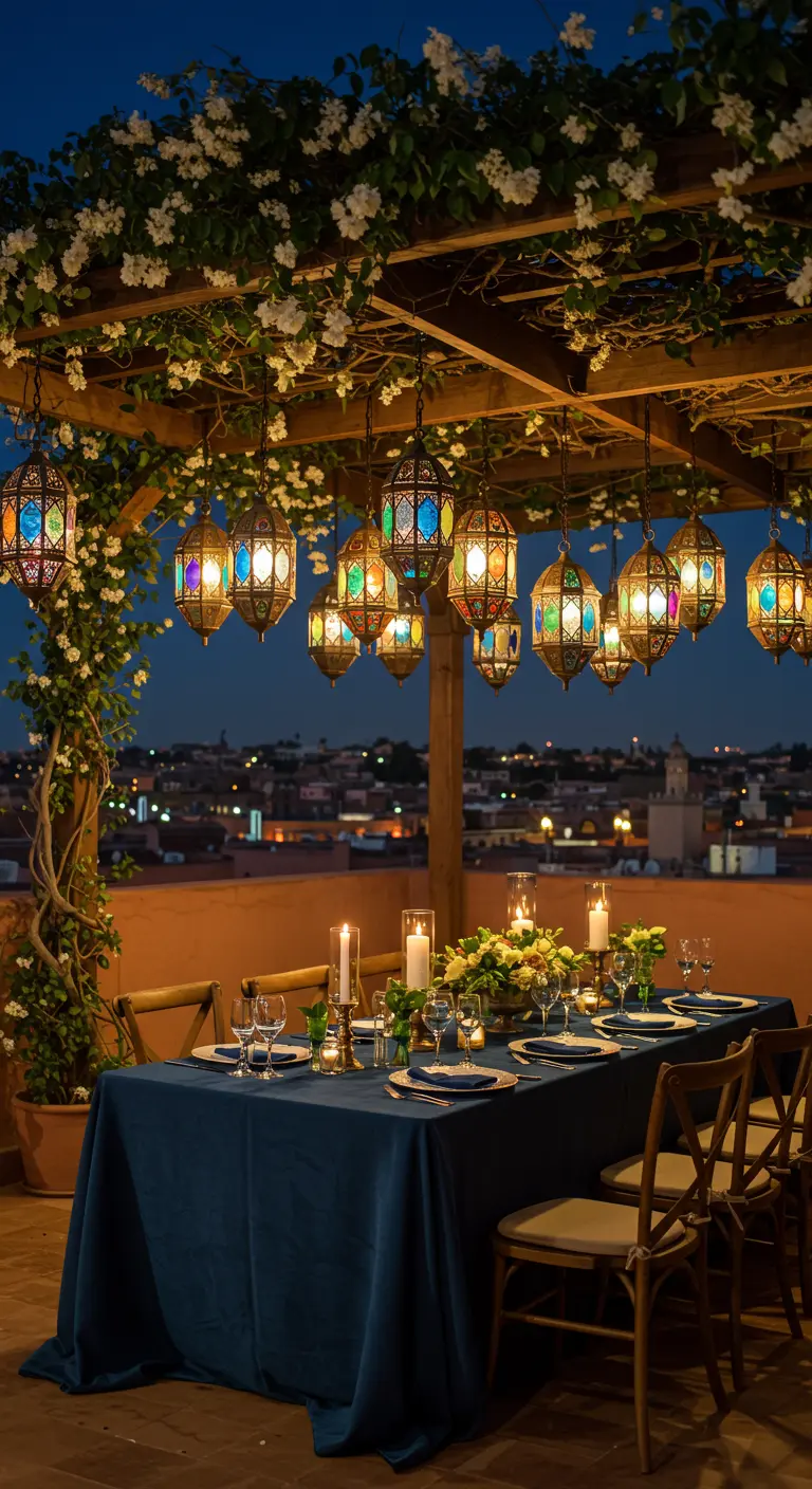 Añade autenticidad con una tetera marroquí de alpaca, vasos de té coloridos y bandejas de latón. ¡Los detalles marcan la diferencia!
